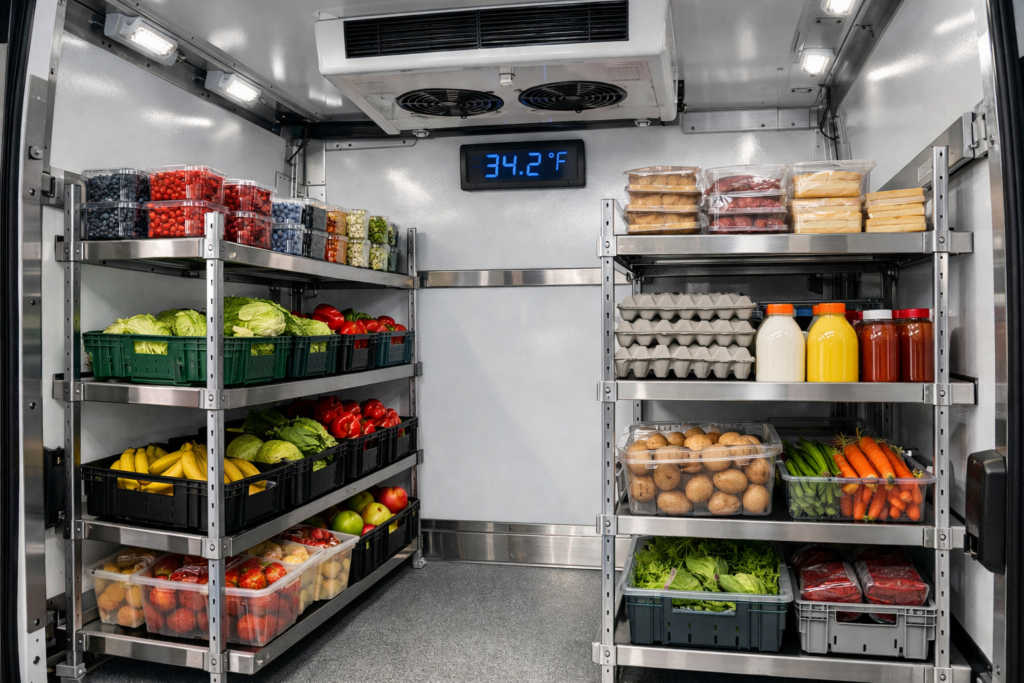 Perfect for transporting fresh goods that require cool but not frozen conditions. Our chiller vans maintain optimal temperature for dairy, vegetables, fruits, and prepared foods.
